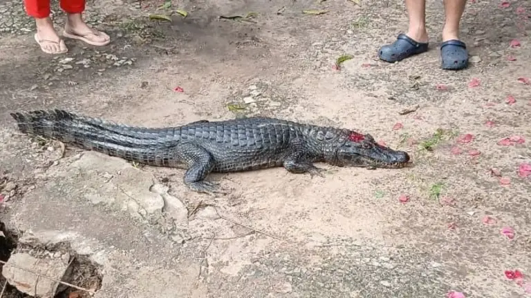 La Policía de Corrientes informó este sábado que rescataron un yacaré que se encontraba en el patio de una vivienda en la localidad correntina de Paso de la Patria.