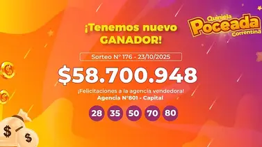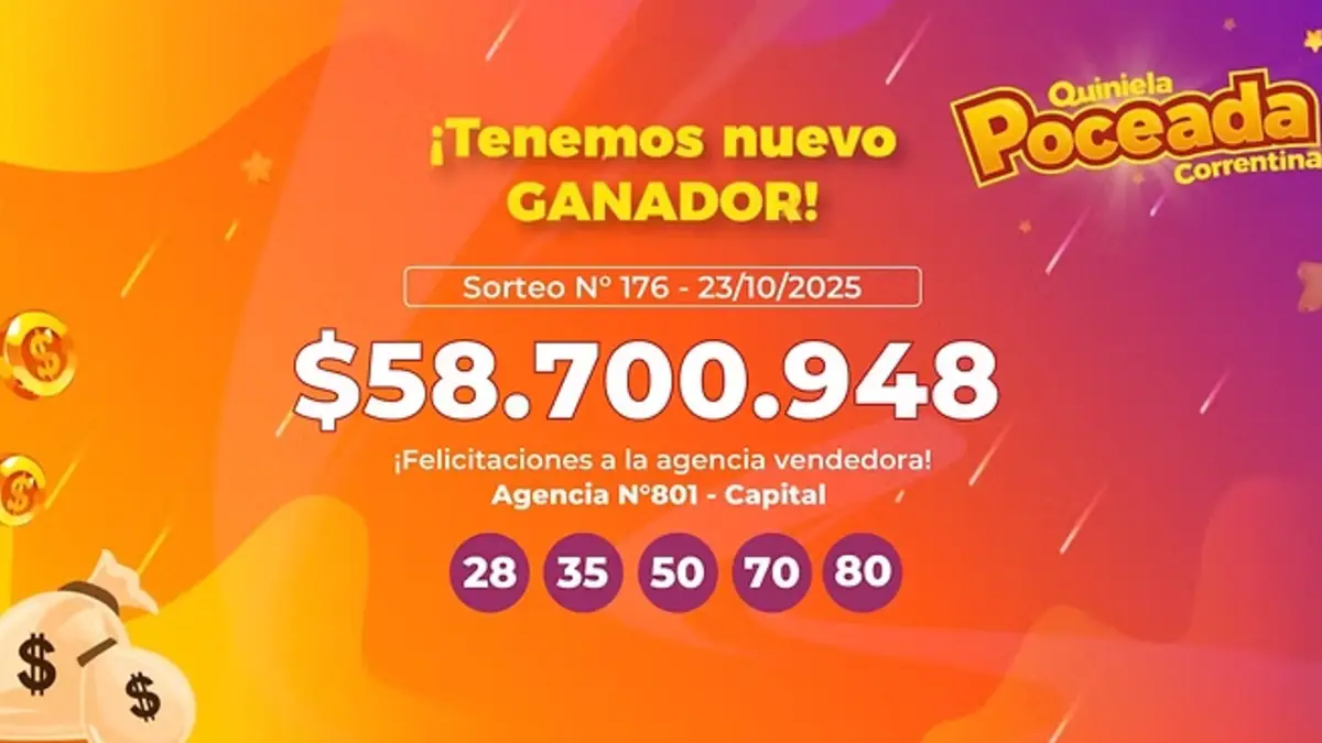 Un apostador en Corrientes acertó este jueves los cinco números ganadores de la Quiniela Poceada Correntina y se llevó un premio de $58.700.948.