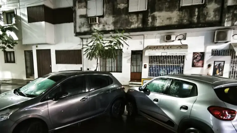 El Litoral recibió durante la madrugada registro fotográfico de las consecuencias de la lluvia en el casco céntrico. En las imágenes se puede ver como los autos, luego de flotar en el agua, fueron empujados por la correntada, quedando mal estacionados, unos sobre otros.