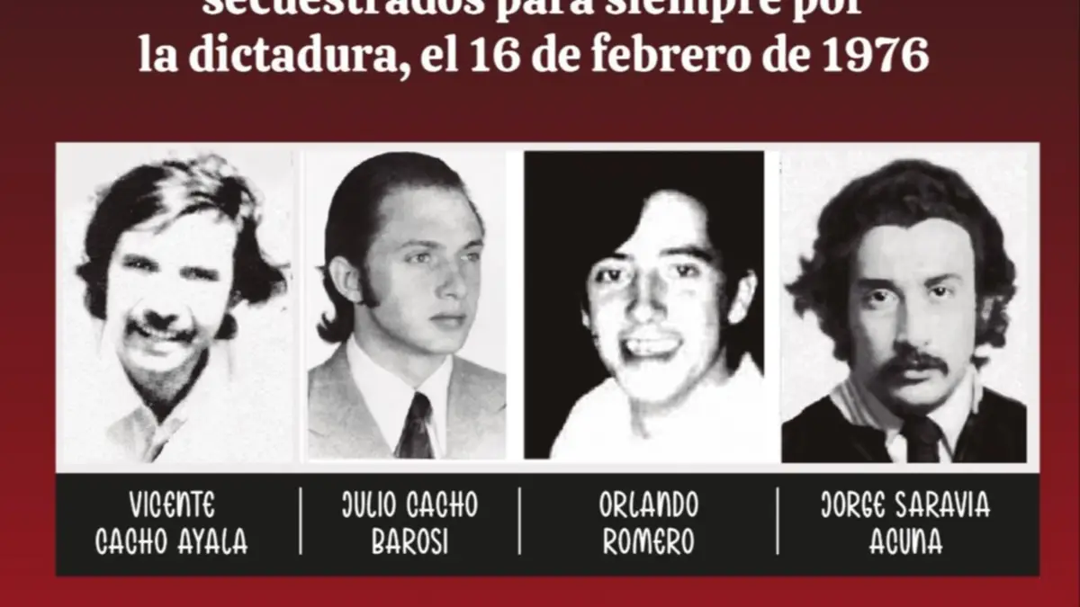 A partir de las 19 de este domingo, 16 de febrero, se realizará en la esquina de calles Salta y Moreno de la capital correntina el homenaje a Vicente "Cacho" Ayala, Julio "Cacho" Barosi, Jorge Saravia Acuña y Orlando Romero, desaparecidos en una redada de la que participó la Policía en 1976.