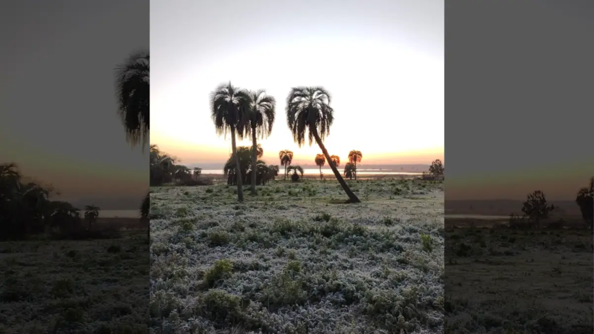 En las imágenes que llegaron a El Litoral se puede apreciar como el frío provocó una capa de escarcha sobre la vegetación. No es de extrañar ya que la mínima para esta jornada es de 1° C y la máxima será de 15° C.