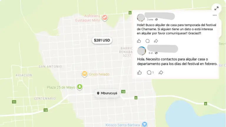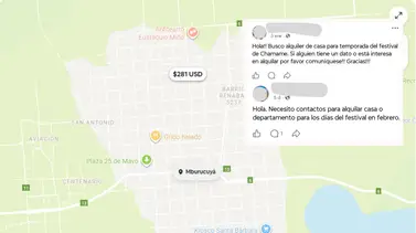 Un relevamiento realizado por El Litoral durante los días del festival revela cifras que sorprenden. A una cuadra de la plaza 25 de Mayo, en publicaciones de Facebook y contactos particulares, los alquileres por tres noches oscilan entre $300.000 y $500.000, según la cantidad de personas.